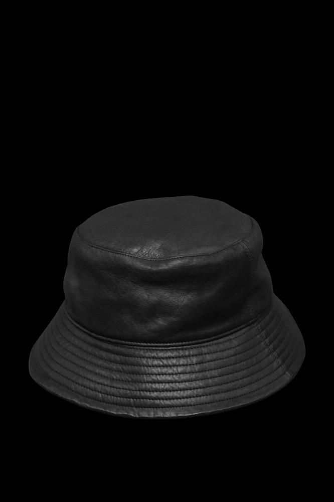 天が平らで台形のようなシルエットベースに対しトップにツバがついたバケットハットを、極めてソフトな印象ですが"レザー"とゆうギャップの演出が可能なカンガルースエードレザーにて製作。日常のファッションアイテムとして被りやすく、多様なスタイルに合わせやすくざっくりと無造作にも被りやすいハットとして位置付けられています。多様なスタイルに自然に馴染む高い親和性がありながら、コーディネートをアップグレードさせるアイテムです。