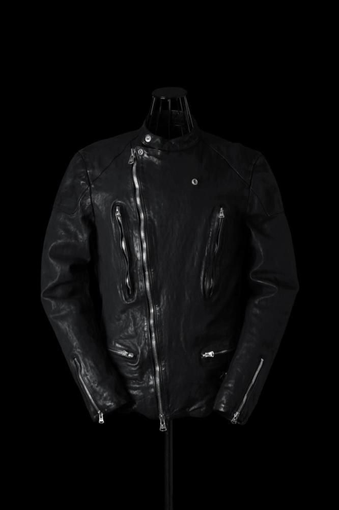 同マテリアルにて展開する"1927-01"モデルをベースに、シングルライダースの特徴的な肩バックヨークを排除し、スタンド襟を掛け合わせたNEWデザインのセミダブルライダース。ベースシルエットは、定番モデルに近しいブランドオリジナルパターンでソリッドに構築。胸部に垂直に、下方に水平2本ずつ計4本のファスナーポケットを配備、腰部の両サイドには前方に向かってダブルストラップのアジャスターを装着した英国らしさを感じさせるデザインを使用しています。高級レーヨンファブリックを裏地に採用することにより、非常に袖通しの良いライニング。ファスナーにはYKK社製高級タイプのEXCELLA(エクセラ)を採用、引手には実用性を考慮したブランドオリジナルデザイン。