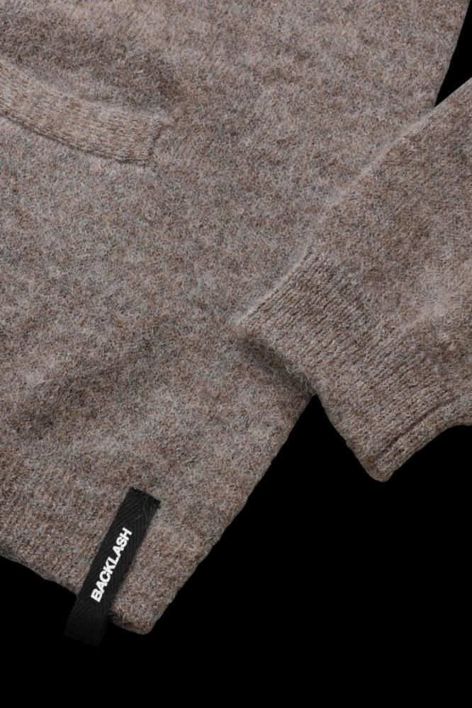 適度な毛足の長さを持ち、肌触り良く滑らかな質感のモヘアを主に多混紡の糸を丁寧に編み上げたニットファブリック。ウレタン混紡糸を用いた程よい伸縮性も持ったストレスフリーな着用感。程よいゲージ幅の編み目の設定に、モヘアの質感がマッチしたカジュアルにも品のあるシンプルに素材感がストレートに表現された大人のニットシリーズになっています。