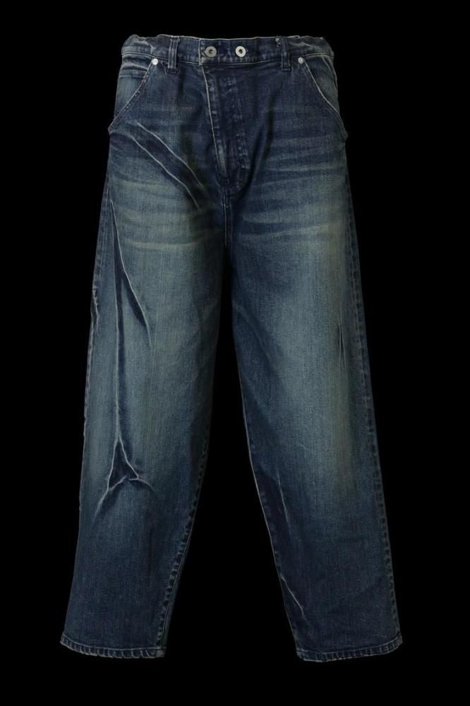 オーバーサイズの5Pパンツを畳み込みリメイクしたかのようなデザインを構築。広いウエストから深い股上まで、強く主張したワイドから裾に掛けてテーパードの効いたシルエットで仕上げることで纏まりのあるオーバーフィッティングパンツになっています。深い股上設定においてもストレッチデニムを用いることで可動性に優れたストレスフリーな履き心地になっています。動きに伴った自然なパンツの躍動感をもたらしています。ウエストにはドローコードを内臓、より一層ラフに着用可能になっています。フロントはファスナーフライ、ワイドシルエットを魅せつつも纏まりを求めた適度な裾幅の設計は、多種多彩なシューズのチョイスを可能にしています。
