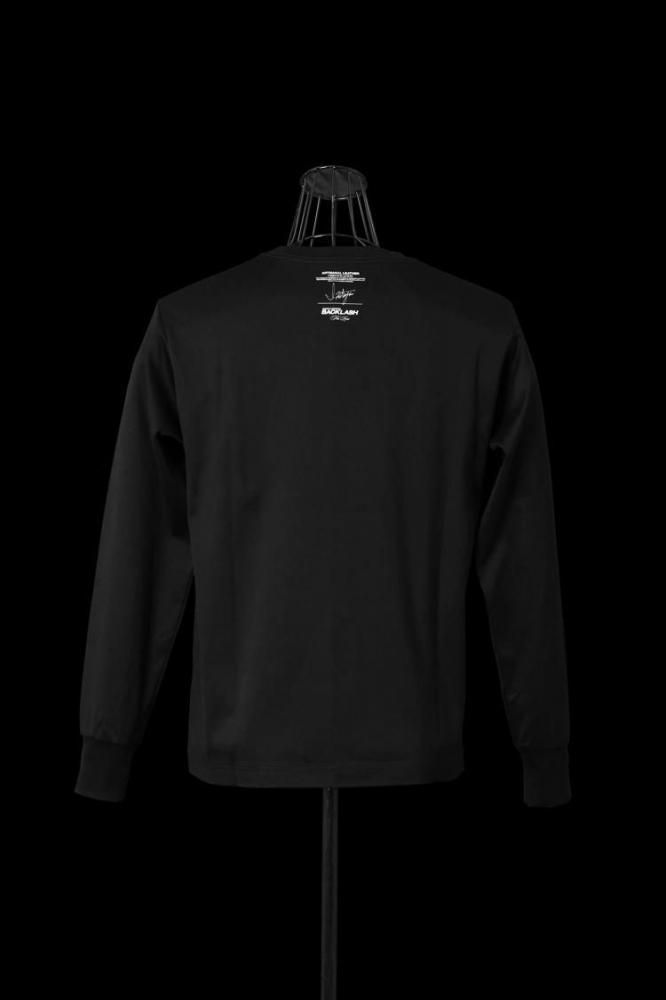 BACKLASHの定番ライダースのサイズ感に合わせ、革ジャンの中で寄れ過ぎない身幅、裾から数センチ出るように計算された着丈、袖通りの心地よい袖丈、胸元から覗く衿のバランス、一枚で着た時でも程よいバランスで整え、そして背中で語る最高峰の証としてハイエンドライン「BACKLASH The Line」を印しました。