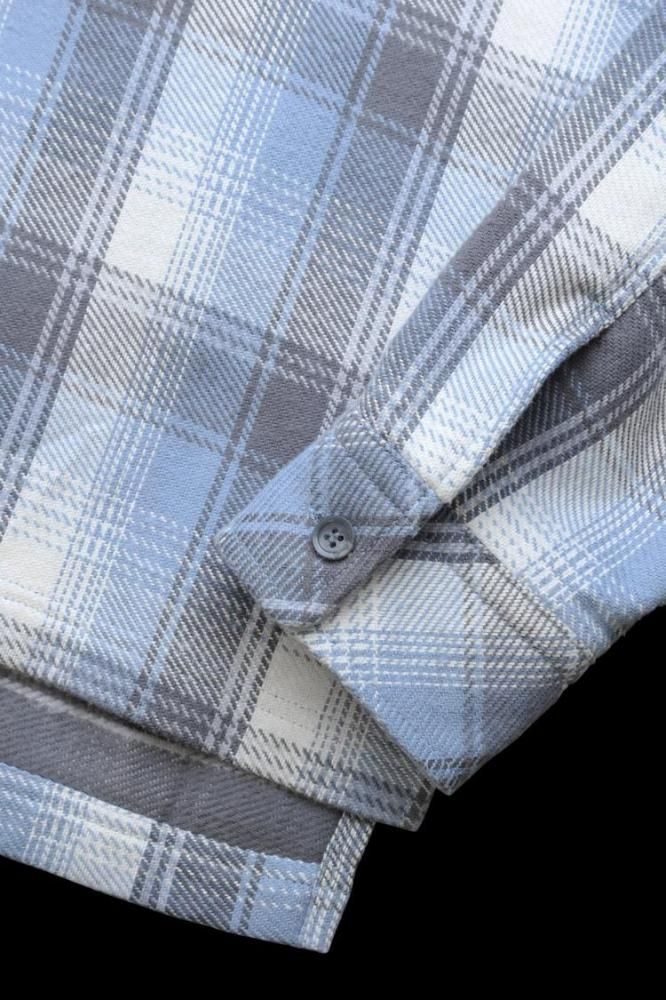 シャツ素材の中では少し厚めの素材によりざっくりと織り上げられた、インナーからメインでの着用にも適度なヘビーコットンチェックネルファブリックを採用。起毛加工を施すことで程よい通気性を持ちながら心地の良い肌触り、保温性に優れているのが特徴的です。生地のボリューム感とライトウェイトの感覚のバランスが良く、勝手の良い着用に適したチェックシャツになっています。