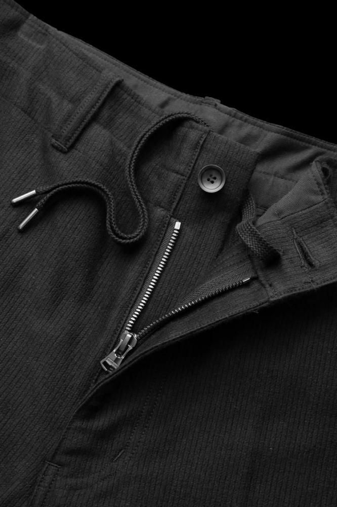 厚手で丈夫なコットンベッドフォードコードファブリックを採用。綾織りと平織りを組み合わせた二重織りによる表面の縦方向の畝、ベルベットのようなしっとりとした艶やかな手触りに対し、肌あたりはサラッとした軽快なタッチが特徴的です。程よい厚みの丈夫さとドレッシーさを兼ね備えた素材、厚手の織物による丈夫さ、交織による織りも加わった表面の立体的な畝とは裏腹に、通気性にも優れた着用シーズンを通しやすい一本です。