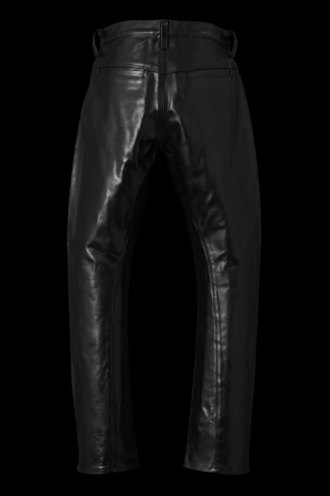 "1254-08 イタリアンダブルショルダー製品染めパンツ"にて展開する全体的にタイトフィットでシャープな脚線美を意識したストレートシルエットをベースに、製品加工による収縮加工を施さないことで、わずかなゆとりのあるストレートシルエットパターンを新たに製作。1.0mm厚のレザーマテリアルに整合させたパンツのシルエット、フロントもファスナーフライ仕様になります。ウエストから膝までレーヨン裏地を配備することで、スムーズな着脱が可能です。高級レザーを大胆に使用したレザーパンツとして他に類を見ない一本に仕上がっています。