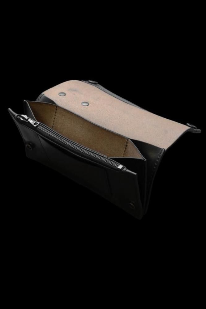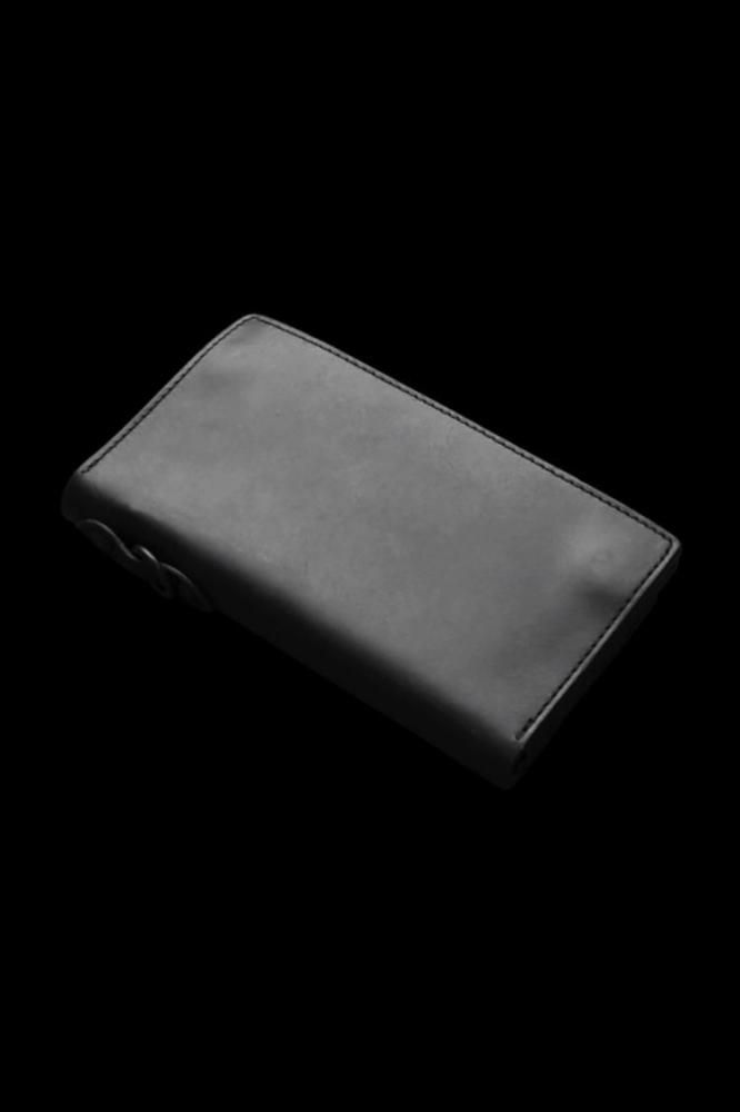 旧くより当時の実用性の高さとファッション性から愛用されていたトラッカーウォレットのデザインを高級レザーマテリアルにて製作。使用者のライフスタイルに重要度の高い堅牢さに最適と言えるホーウィン社製クロムエクセル革を採用、用途/長期に渡ってタフな使用に伴ったエイジングも深くお楽しみいただけるウォレットになっています。長財布タイプ、紙幣を折らず小銭も多く収納することが可能です。カード収納に関しては数枚纏めて収納可能なスペースを2箇所設けています。ホックはカクシにすることでシンプルな長くご使用可能な仕様になっています。チェーンなど装着丸カン箇所も強度の高い取り付けを行っております。