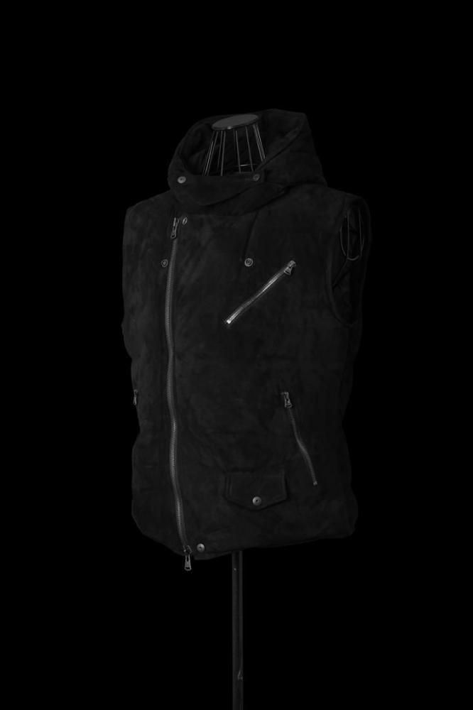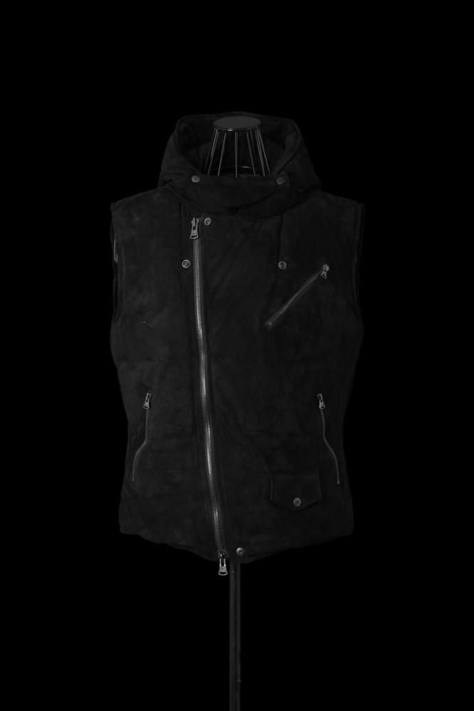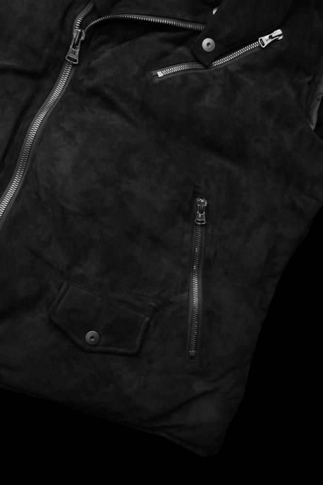 「カンガルースエードレザー+ナンガセレクトプレミアムダウン×河田フェザーポーランド産ホワイトグースダウンフーディライダースベスト」