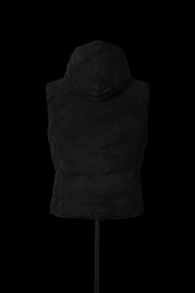 xx NANGA KANGAROO SUEDE “POLISH WHITE GOOSE DOWN” HOODED RIDERS VEST【BLACK×BLACK】