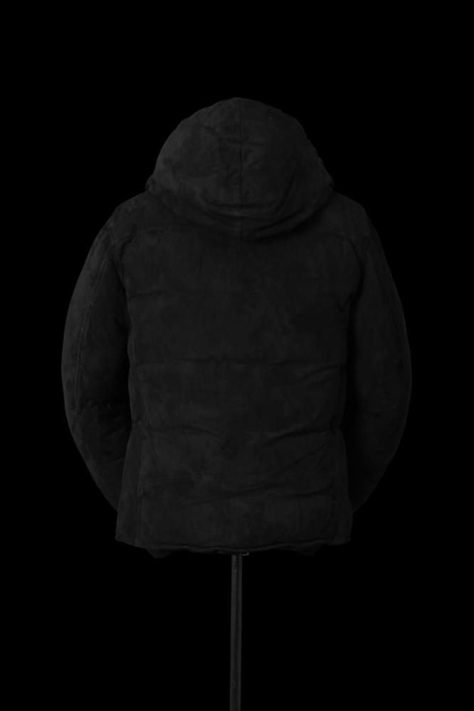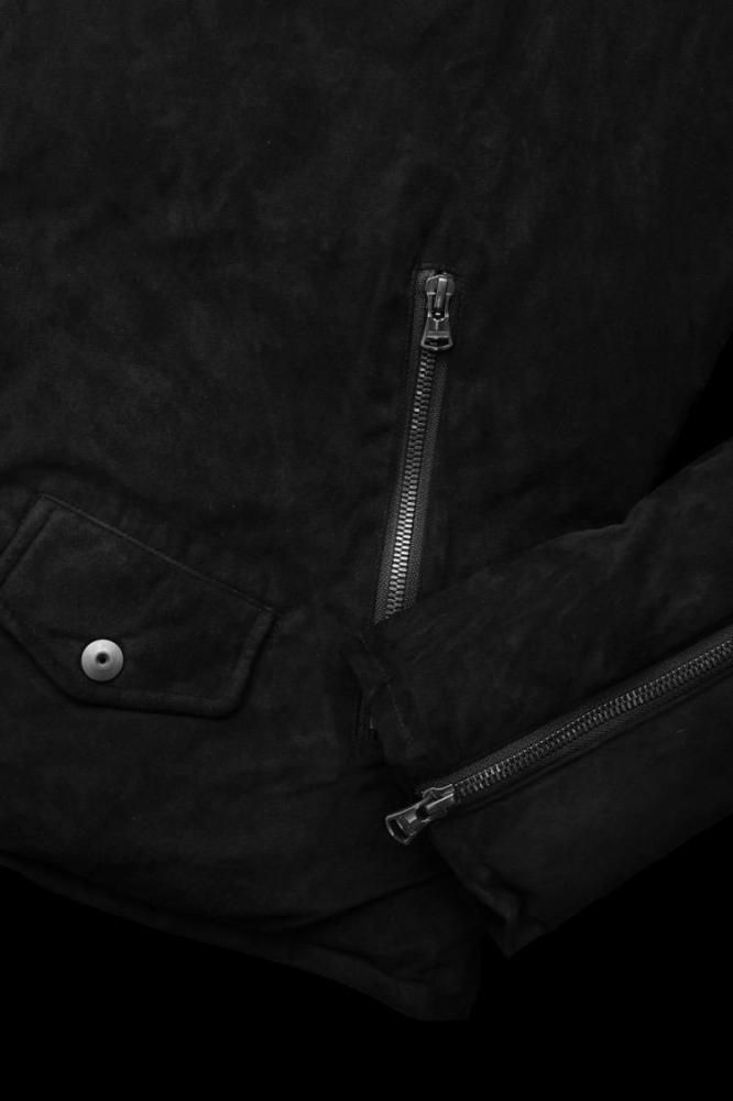 xx NANGA KANGAROO SUEDE “POLISH WHITE GOOSE DOWN” HOODED RIDERS JACKET【BLACK×BLACK】