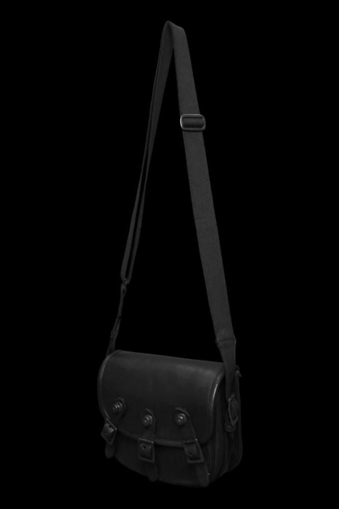 元来英国にてハンティングの際の薬莢を収納する為に使用されていたクラシックでいてカジュアルな印象のカートリッジバッグをブランドオリジナルデザインにて製作。薬莢がこぼれ落ちないよう設計された特徴的な収納口も再現、外側から中が見えない個性的な構造は内容物を安定して収めていただけます。屈強性を求める故の肉厚なダブルショルダーレザーの使用、製品染め加工による風合い、マテリアルとバッグのデザインコンセプトが見事に調和しています。フロントに装着した3連ベルトはドイツホックにより片手ワンタッチでの開閉が可能、ショルダーストラップを敢えて生地で作り上げ軽量化を図り、カジュアルに扱える機能性を考慮したデザインになります。ダブルショルダーレザーをマテリアルに独自の染色加工のプロセスを経たレザーの風格を放ちつつ、トラディショナルなシーンのみならず多様なシーンで自然に持ちやすいカートリッジバッグに仕上がっています。