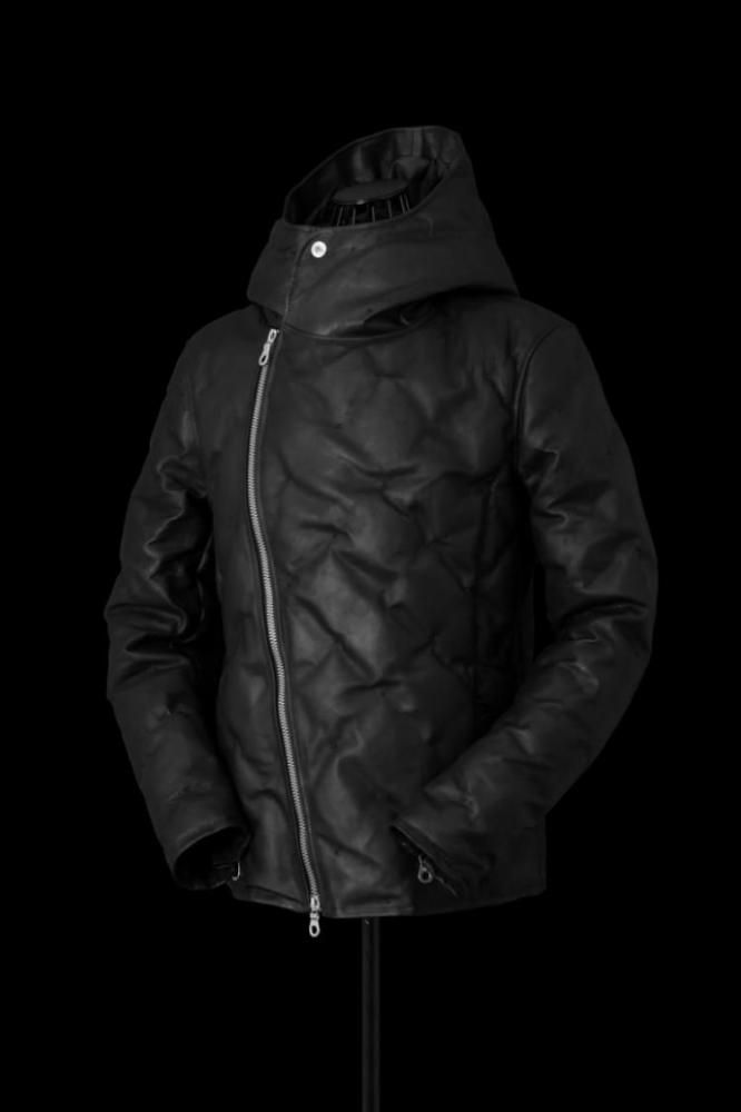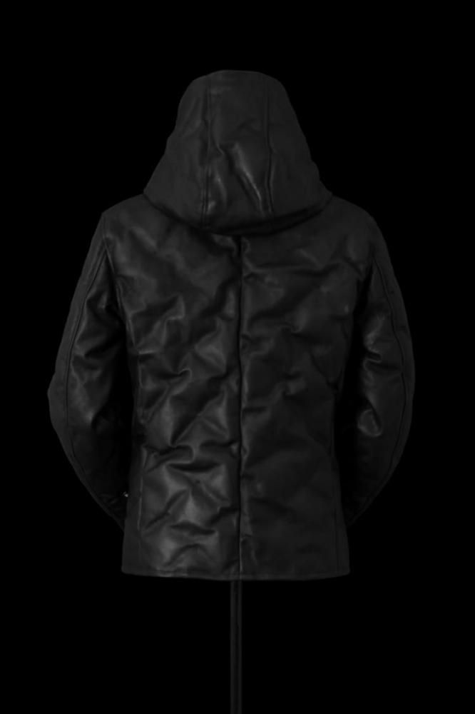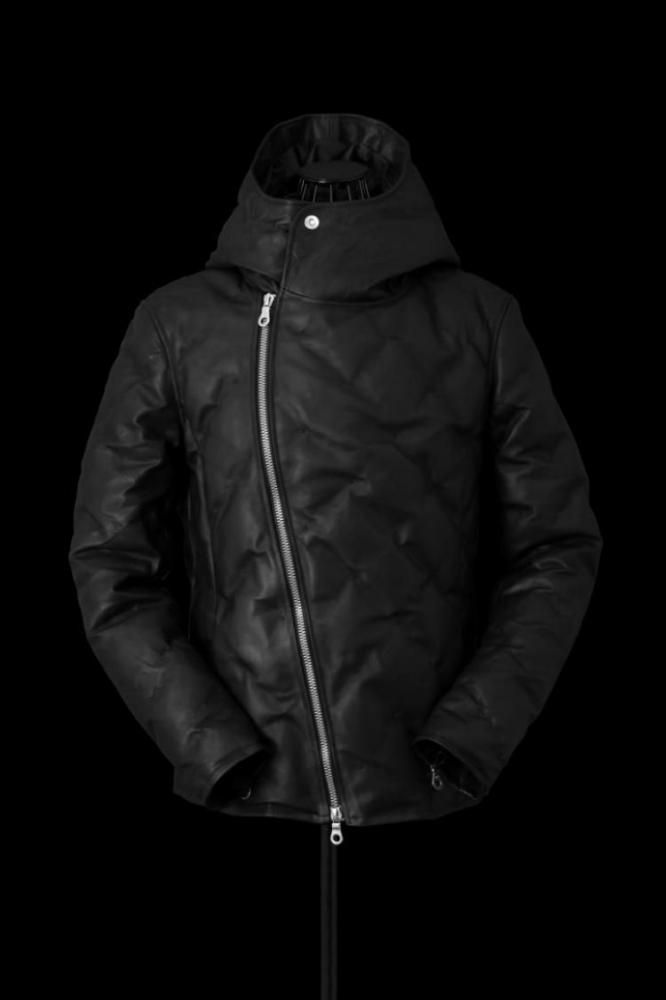 TANNED JAPAN CALF 0.8mm UNEVEN DYED STITCH “POLISH WHITE GOOSE DOWN” HOODED BLOUSON