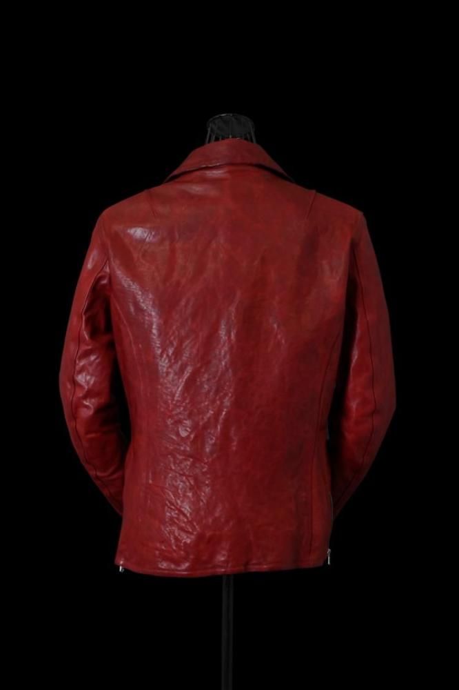 "ヴィンテージ"と称されるイタリアン産ダブルショルダーレザーを採用。ブランドを代表する製品染色によるものとは異なり、革の状態で染色を施すことで、より一層深い色彩の革になります。多分にオイルを染み込ませた下地をベースに、表面にワックスをかけ高圧プレスを用いることにより他の革種とは異なる独特なトラの強い表情を生み出しつつも、製品元より艶やかな質感を実現することで、独自の異なる二面性を併せ持っています。更にプルアップ加工を施すことにより重厚感のある濃淡を強く形成しています。さらにジャケットとして製品の状態を構築した後に、仕上げとして製品洗いを施すことで皺感のある熟れた風合いを演出しています。ハードな印象を放つ見た目とは裏腹に、非常に扱いやすく手馴染み/着馴染みの良い質感に特化した今後の定番マテリアルを見据え製作された新たなシリーズになります。